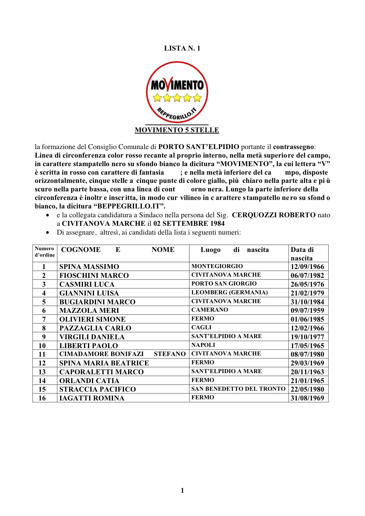Qui potete scaricare il file contenente i nomi dei candidati consiglieri comunali che sostengono la candidatura a sindaco di Roberto Cerquozzi, ed il loro programma elettorale ufficiale.