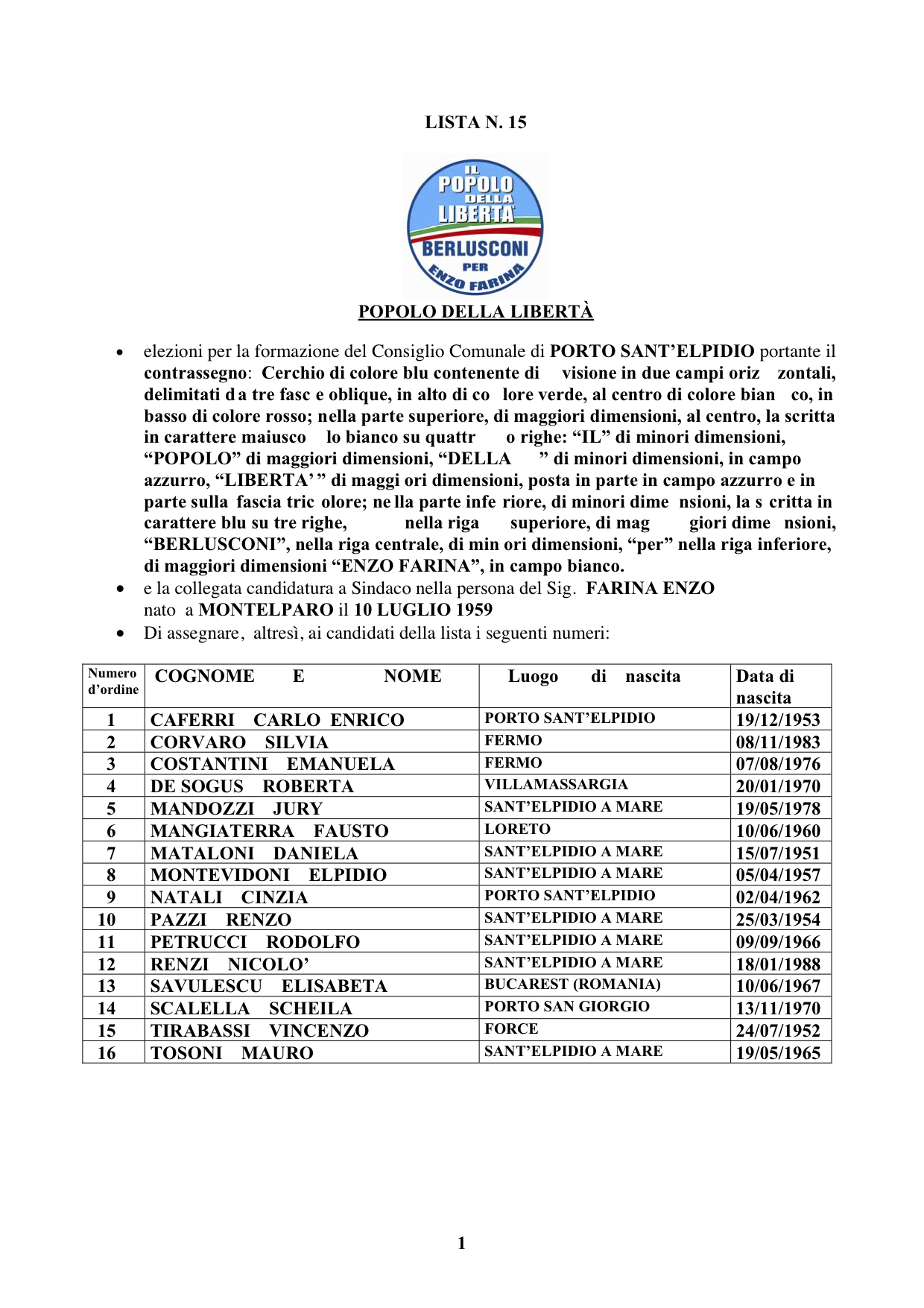 Qui potete scaricare il file contenente i nomi dei candidati consiglieri comunali che sostengono la candidatura a sindaco di Enzo Farina, ed il loro programma elettorale ufficiale.