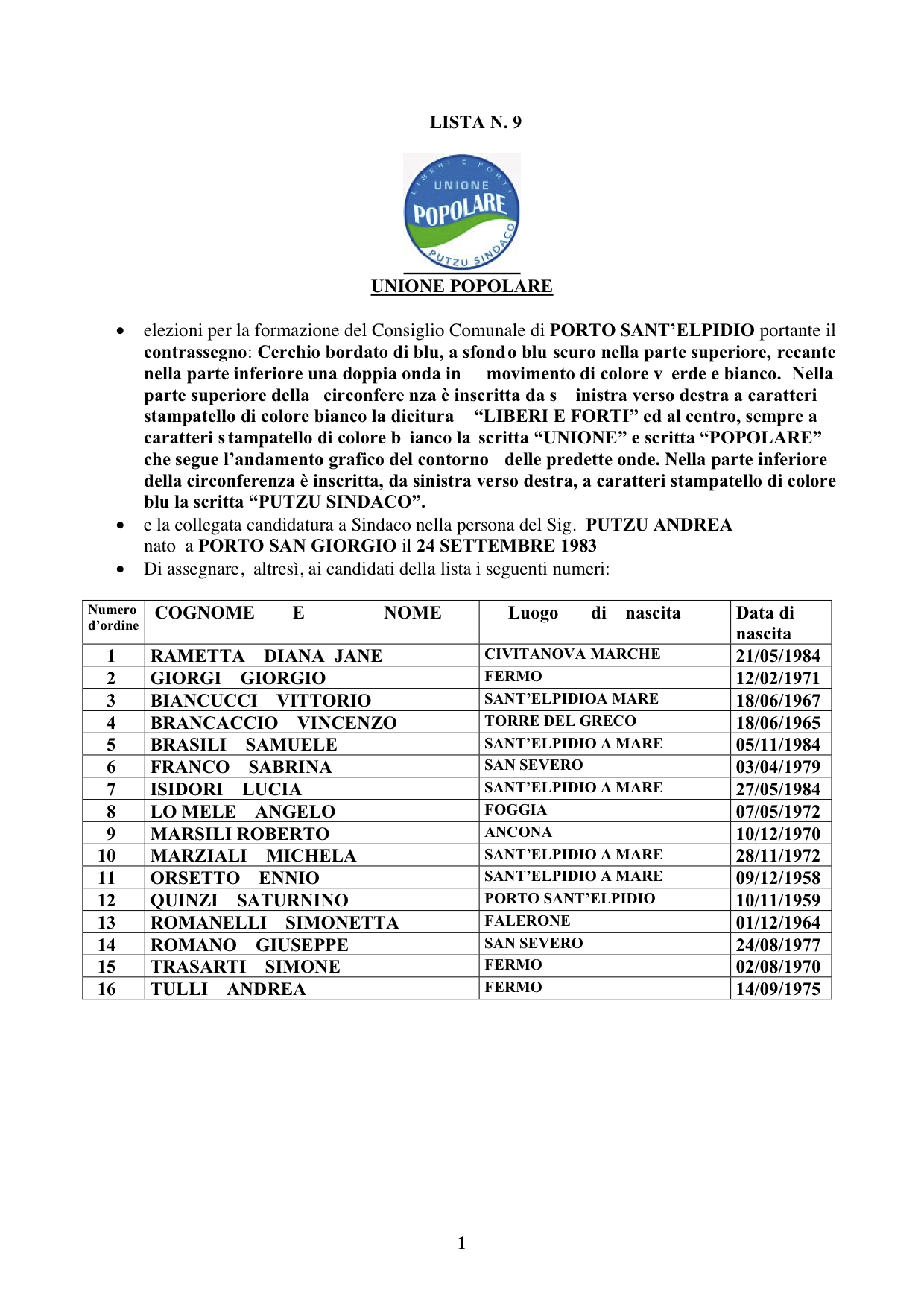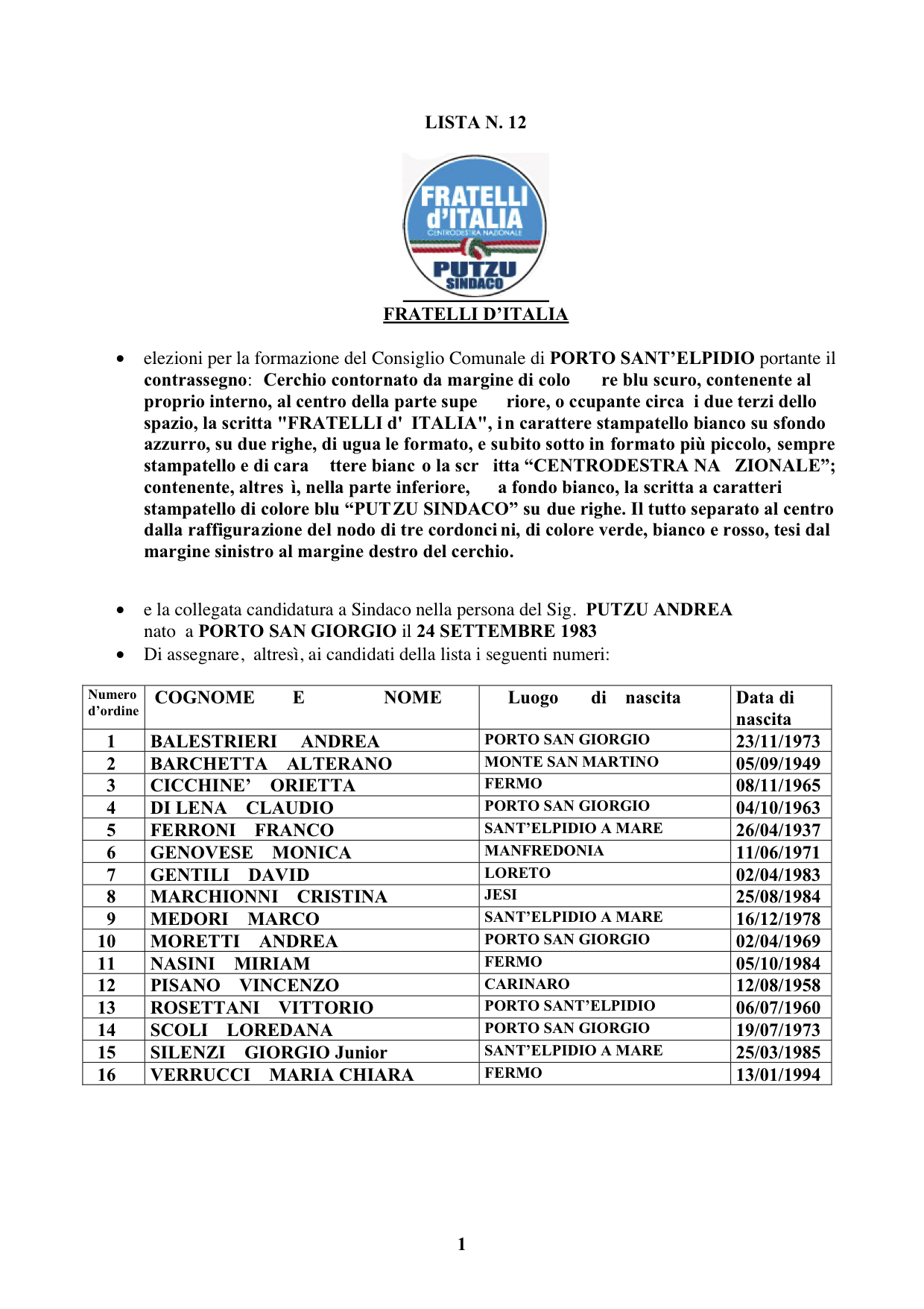 Qui potete scaricare il file contenente i nomi dei candidati consiglieri comunali che sostengono la candidatura a sindaco di Andrea Putzu, ed il loro programma elettorale ufficiale.
